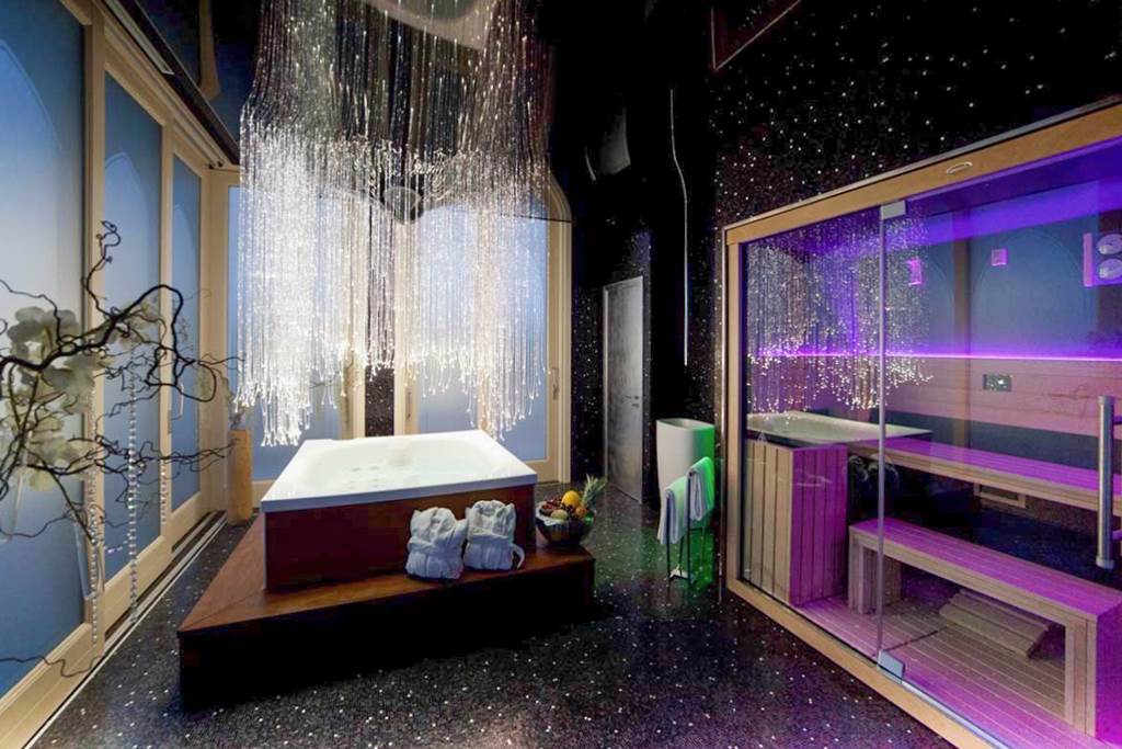 Wellness takes centre stage at Minareto. The hotel’s spa (seasonal) features a sauna, steam room, Turkish bath and whirlpool, with a treatment menu of massages and beauty therapies available at an extra charge.