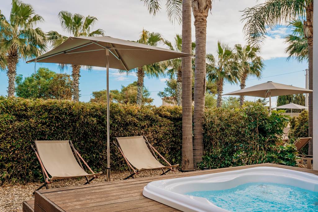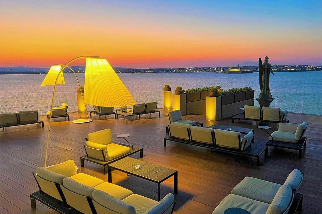 Two upper terraces are fitted with whirlpools overlooking Ortigia, ideal for a late-afternoon soak as the city begins to glow at sunset. Facilities and operation may vary by season, so exact set-up can differ slightly from stay to stay.