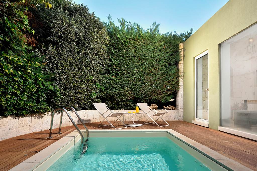 Sleeps 1–2. An upgraded take on the Ortigia category, with more space and typically enhanced positioning. Facilities include flat-screen TV, Wi‑Fi, safe, coffee maker and kettle, fridge, sunbeds on the terrace, minibar (charge), pillow menu, turndown service and luxury bathrobes and slippers.