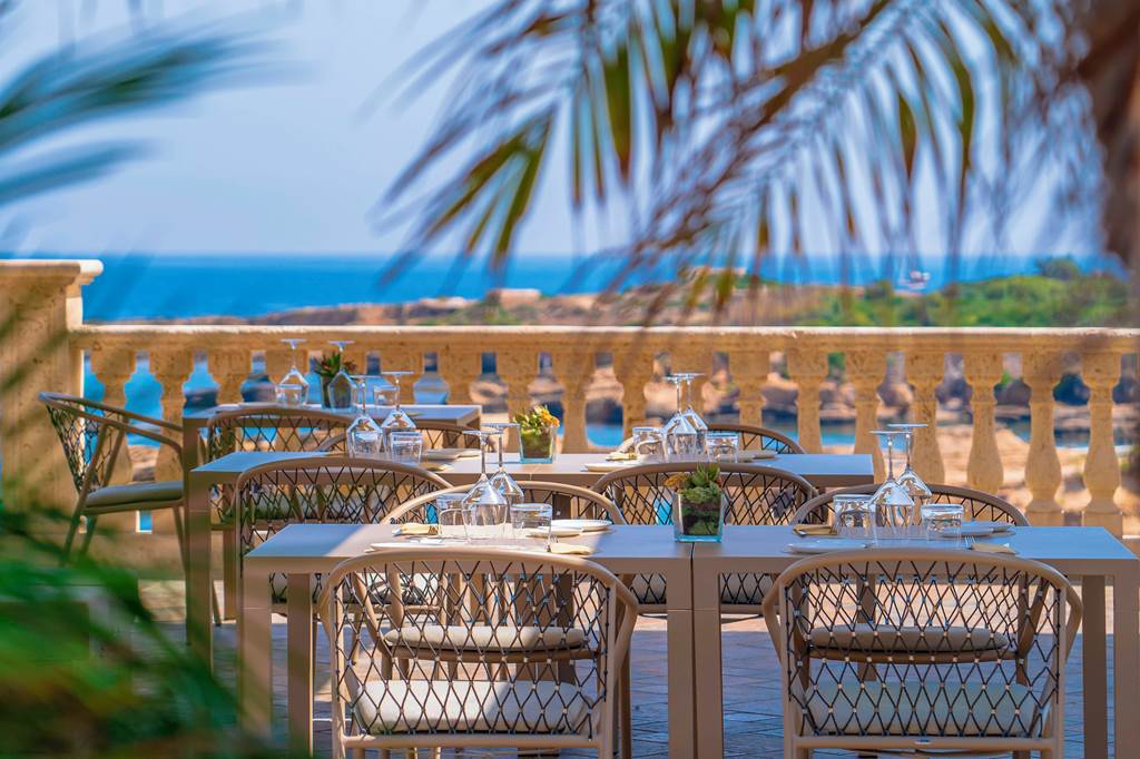 Dining at Minareto is very much about the setting. Terrazza Plemmirio is the main restaurant, combining buffet and à la carte service and serving refined Italian and Sicilian cuisine for breakfast, lunch and dinner out on the terrace. Expect fresh-caught seafood, seasonal island produce and well-curated local wines. Highchairs, a kids’ menu and a handy microwave are available for younger travellers.