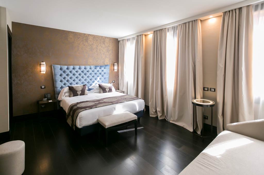 Rooms at The Venice Times are modern and understated, with crisp linens, neutral tones and contemporary lighting. They blend subtle Venetian touches with clean, minimalist design, and all offer essentials such as air conditioning, flat-screen TV, Wi‑Fi and a well-equipped bathroom.