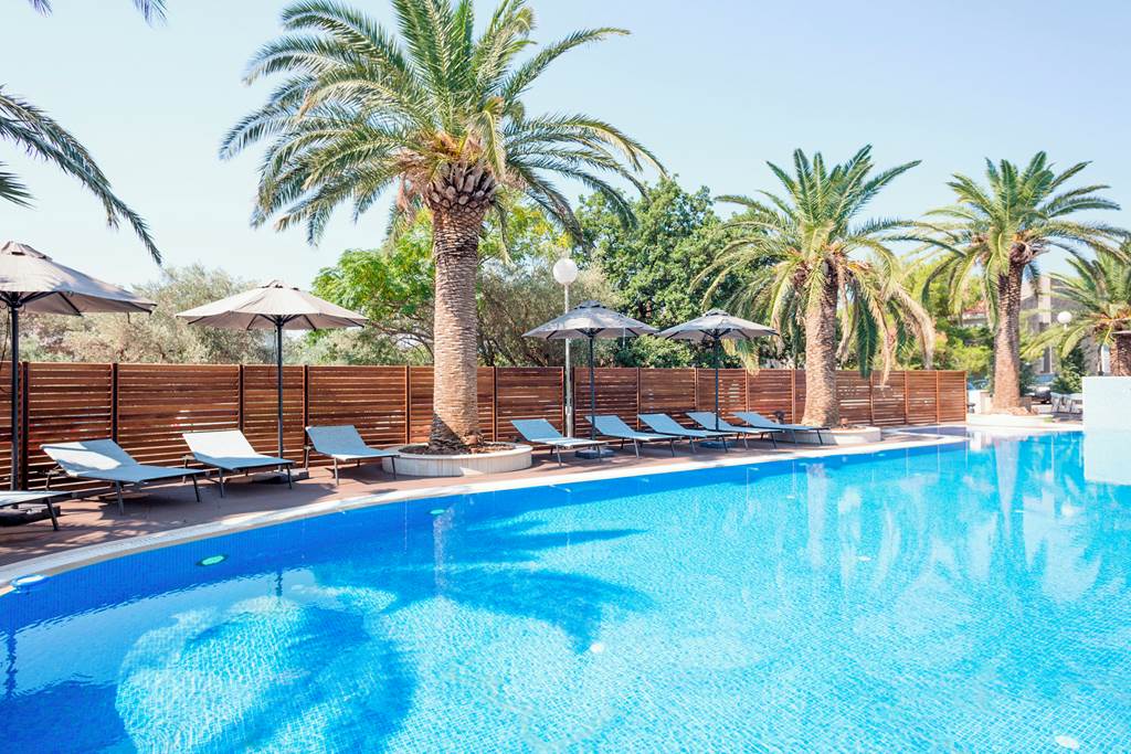 Hotel Ami Petrovac is very close to Petrovac’s main town beach – it’s just a short walk through the resort centre to reach the crescent-shaped bay, sunbeds and seafront promenade.