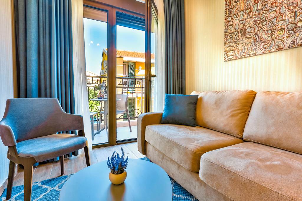 From the hotel it’s a short walk down to the beach and promenade, where you’ll find cafés, ice-cream stands and traditional restaurants looking out over the Adriatic. Boats glide across to the small offshore islets, and there are scenic walking paths along the coastline if you feel like stretching your legs between swims.