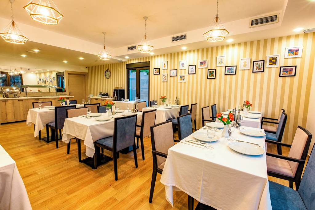 There is also a lobby or poolside bar area (set-up can vary by season) where you can order drinks and simple snacks during the day, making it easy to spend long afternoons by the pool without needing to leave the hotel. For a change of scene, Petrovac’s seafront tavernas, pizza places and cafés are just a short stroll away, so you can try fresh seafood and Montenegrin specialities as often as you like.
