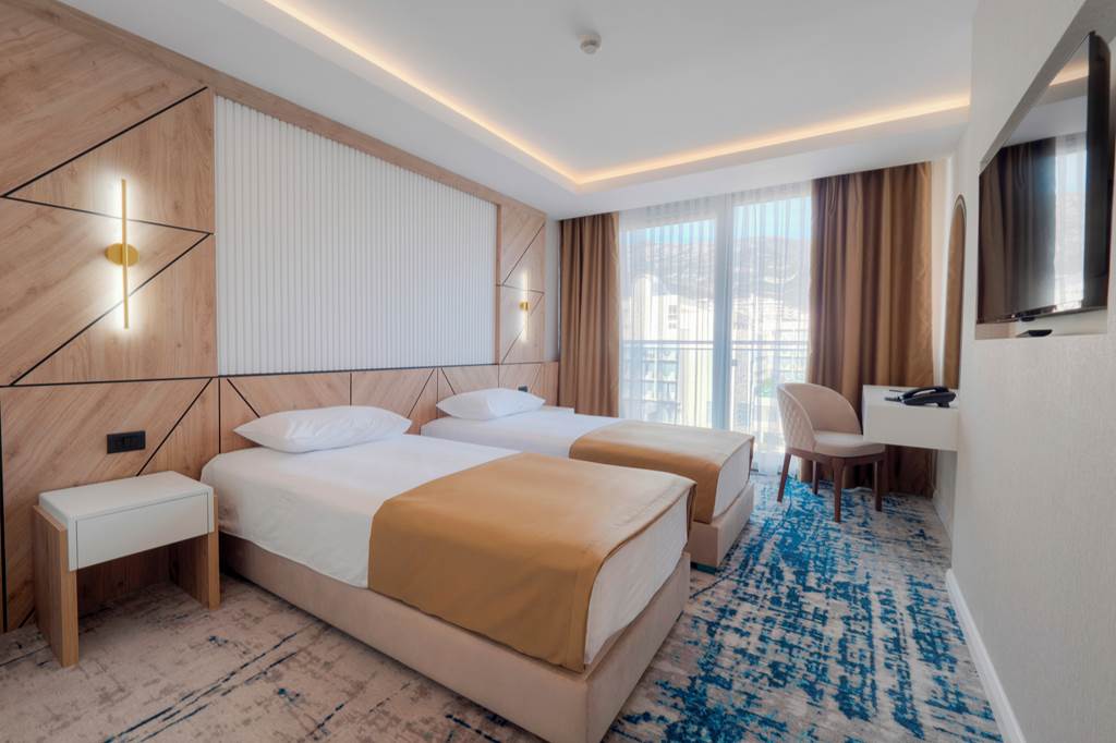 Budva’s atmospheric old town, tiled rooftops and harbourfront restaurants are a short taxi or bus ride away, giving you plenty of options when you want to swap pool time for culture, shopping or a scenic sunset dinner.