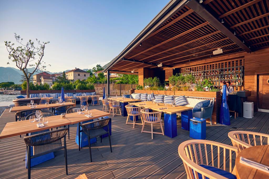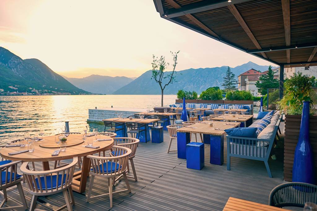 Dining at Huma Kotor Bay Hotel is all about those views. Expect a contemporary beachfront restaurant and bar where wide windows and outdoor terraces look straight across the bay – perfect for slow breakfasts and romantic, candlelit dinners. Menus lean on fresh Mediterranean flavours, grilled fish, vibrant salads and local specialties, often paired with regional wines.