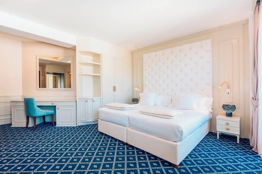From the street, Iberostar Waves Slavija looks every inch the smart city-style hotel; from the rooftop, you’re eye-level with Budva’s terracotta roofs and the shimmering Adriatic. Interiors blend classic touches and contemporary lines, while the rooftop infinity pool, bar and terrace steal the show at sunset. Inside, generous rooms and polished facilities create a comfortable home base between beach time and old-town wanders.