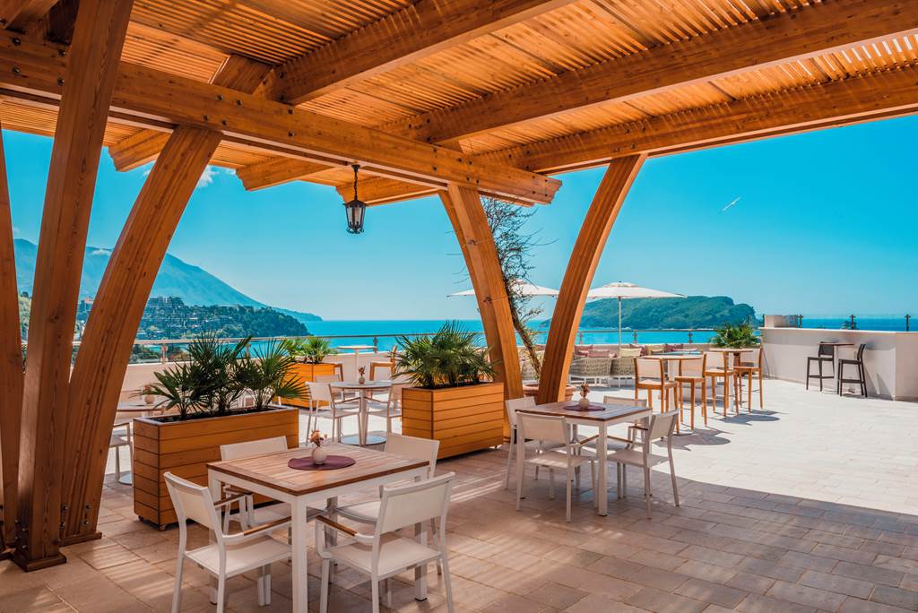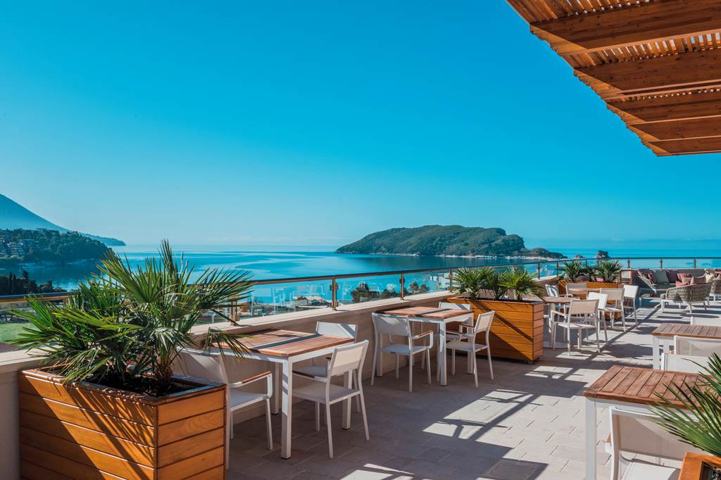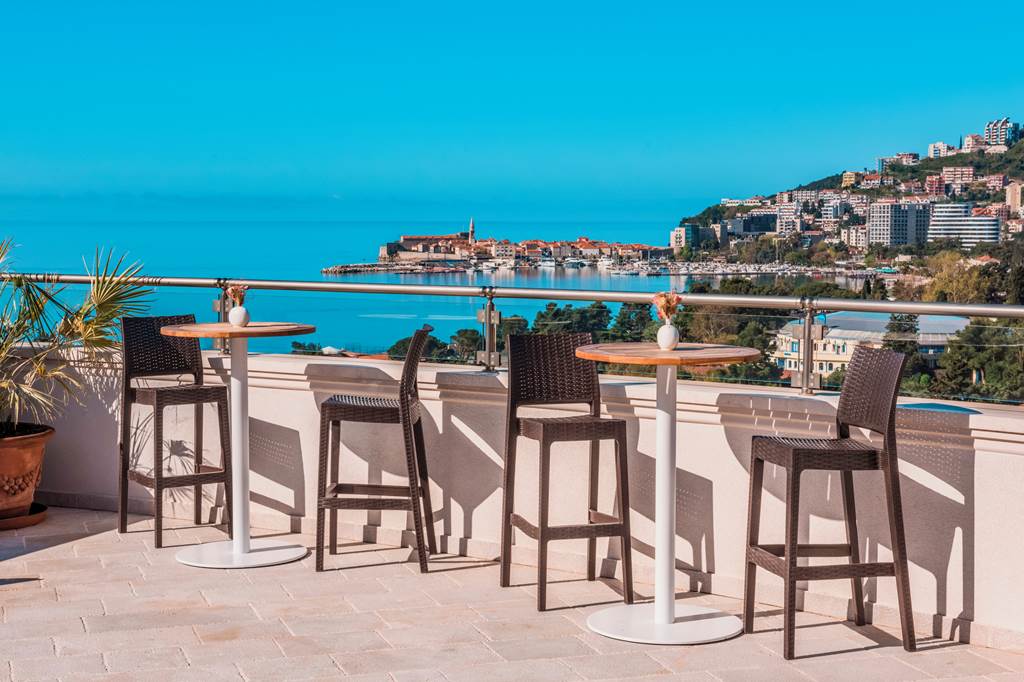 A stylish lobby bar serves coffee, aperitifs and nightcaps, while the rooftop bar becomes the star attraction in the late afternoon and evening. Order a chilled local wine or cocktail and watch the light fade over Budva’s skyline and the Adriatic.