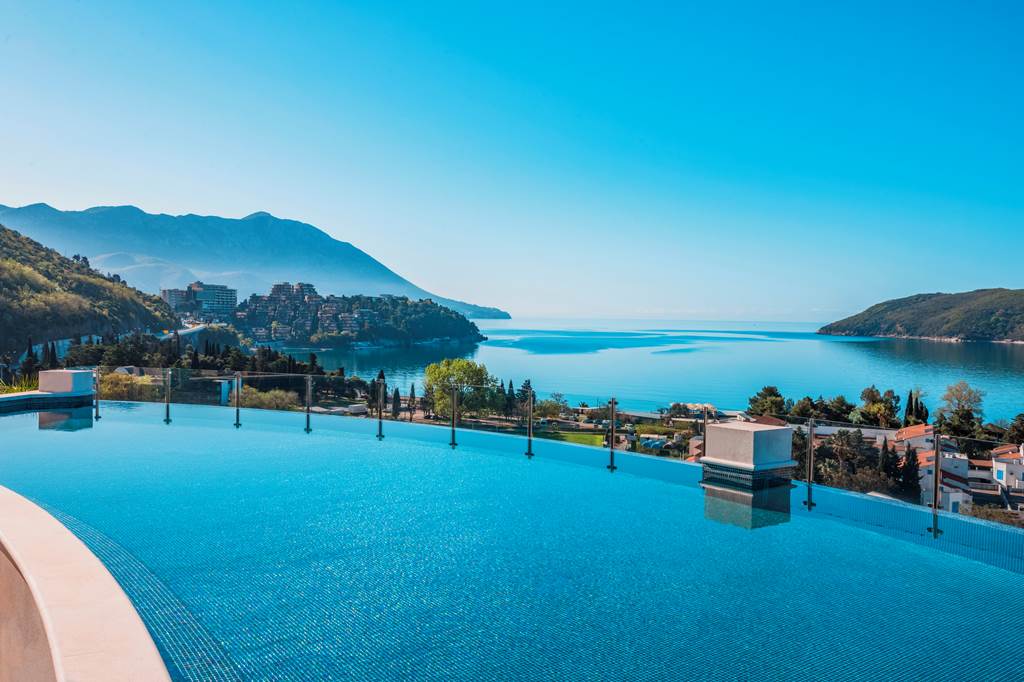 🌇 Rooftop infinity pool and bar with sweeping views over Budva and the Adriatic