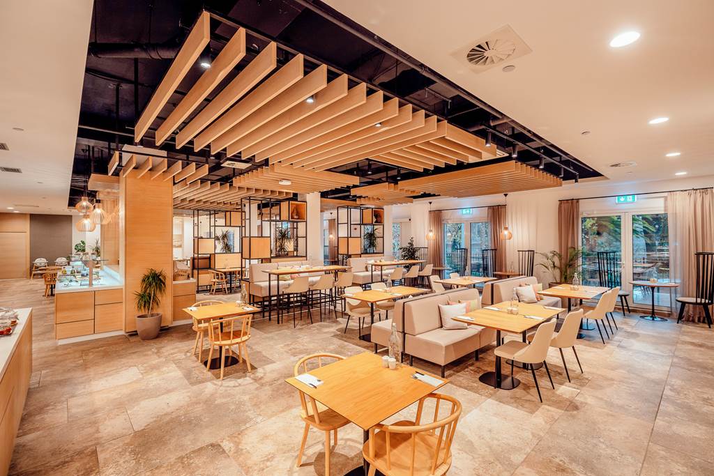 Breakfast is typically served buffet‑style with cooked options, local cheeses and charcuterie, pastries, fruit and made‑to‑order eggs. Later in the day, the restaurant shifts into à la carte service, complemented by a well‑chosen wine list heavy on regional labels.