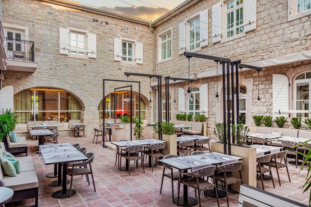 The culinary heart of Lazure is its waterfront restaurant and terrace, where stone arches frame views of the marina and bay. Expect a menu rooted in Adriatic and Montenegrin flavours – ultra‑fresh seafood, seasonal produce and local olive oils – with international favourites alongside creative small plates.