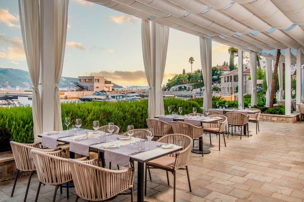 Stays are typically on a Bed and Breakfast basis. You’ll enjoy a generous buffet breakfast each morning, then have the flexibility to dine à la carte at the hotel’s waterfront restaurant or head into Herceg Novi for local konobas, seafood grills and wine bars.