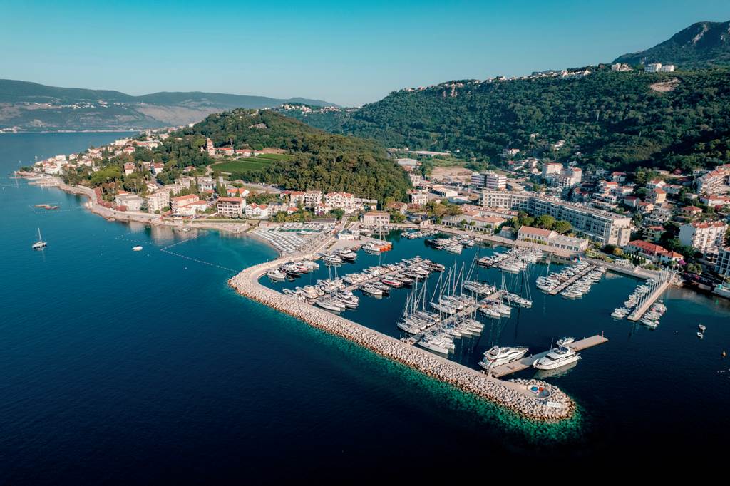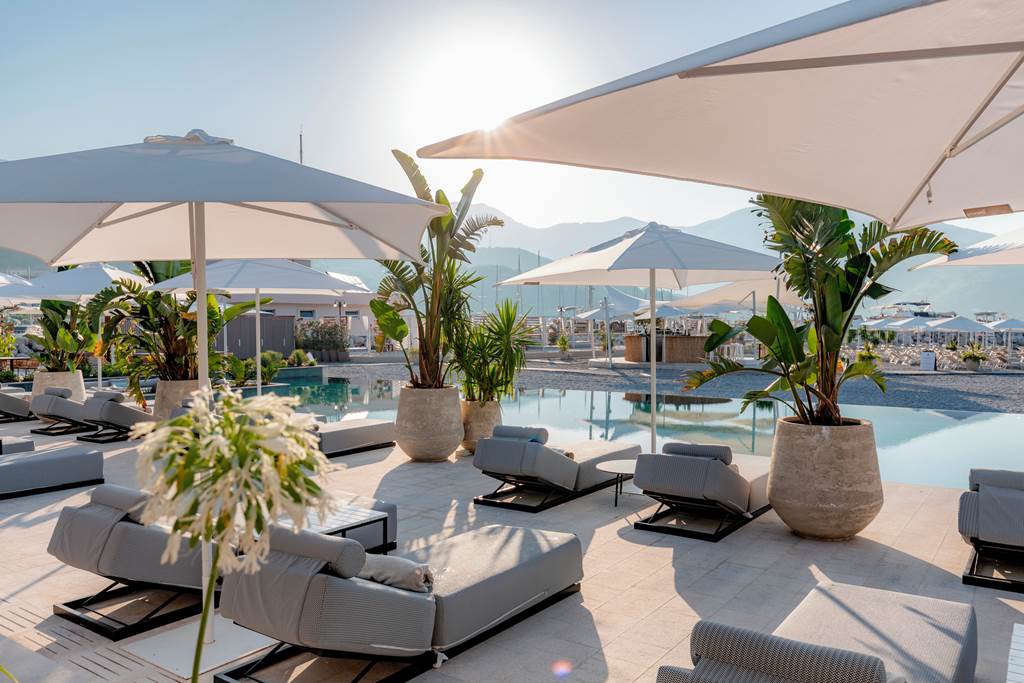 Lazure Hotel & Marina occupies a prime spot on the Bay of Kotor, in the Meljine neighbourhood of Herceg Novi. The hotel sits directly on the sea, facing its own boutique marina and the mountains that ring the bay. Step outside and you’re on the coastal promenade that links Meljine with Herceg Novi’s Old Town, dotted with cafés, bars and bathing jetties.