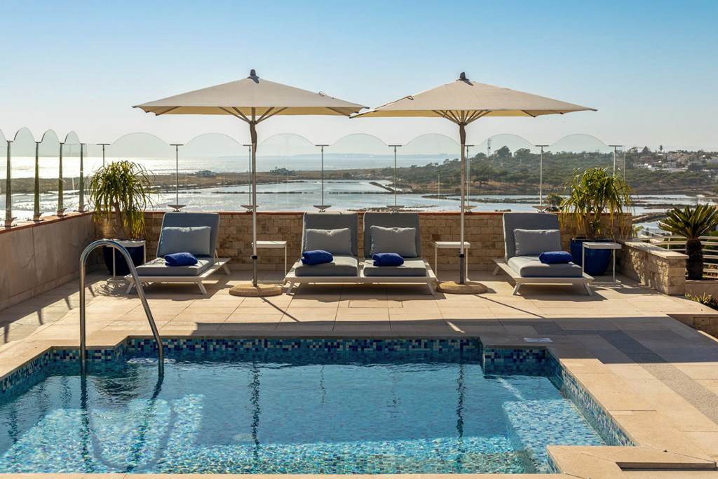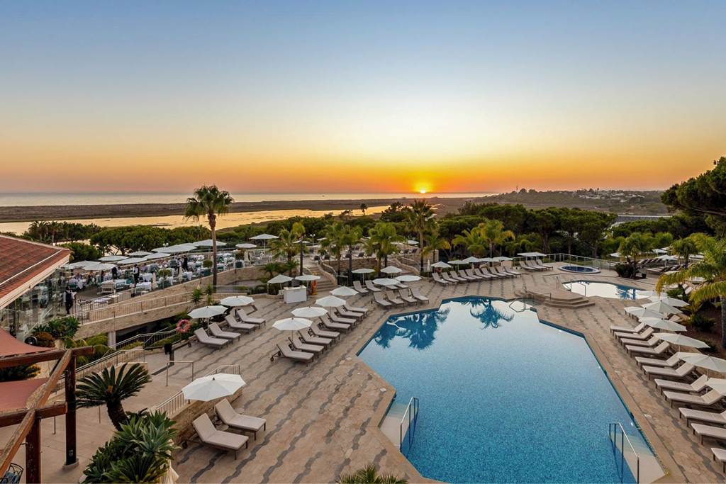 The hotel’s pool scene is deliberately calm and spacious, designed for long, lazy days under the Algarve sun.