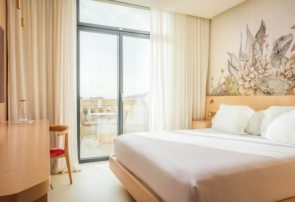 Sleeps 1–2 (plus an infant in some cases). These sought-after rooms add a private terrace, giving you your own slice of outdoor space for morning coffees or evening cava, plus all standard amenities and typically twin setup with two separate mattresses on a shared frame where specified.
