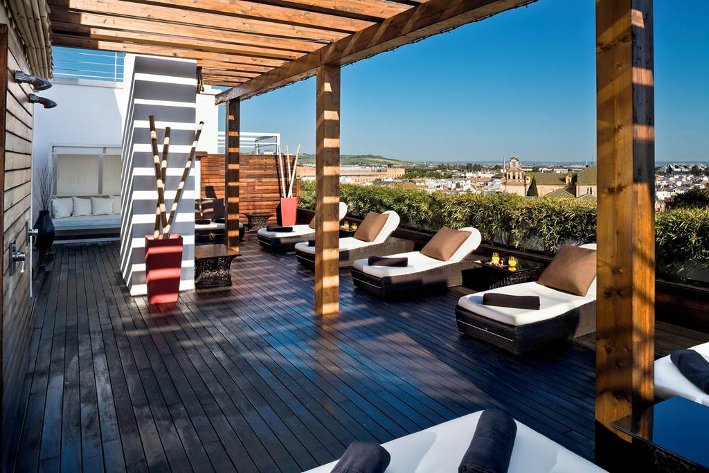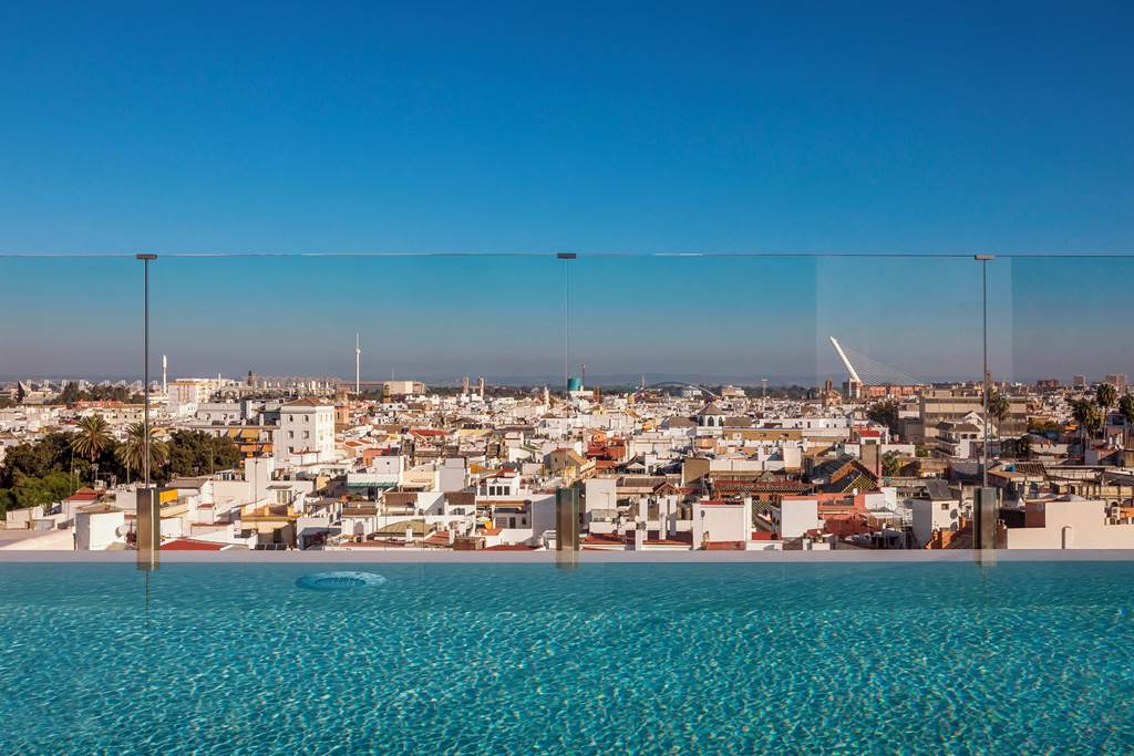 There’s no beach in central Seville, but Gran Melia Colon makes up for it with a serene rooftop freshwater pool, heated and edged by a compact sunbathing deck with loungers and parasols. It’s the perfect spot to cool off after a morning at the Alcázar, with skyline views and a relaxed city-resort feel.