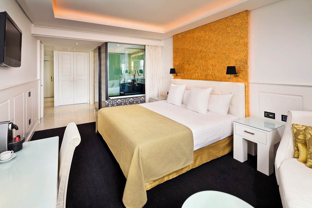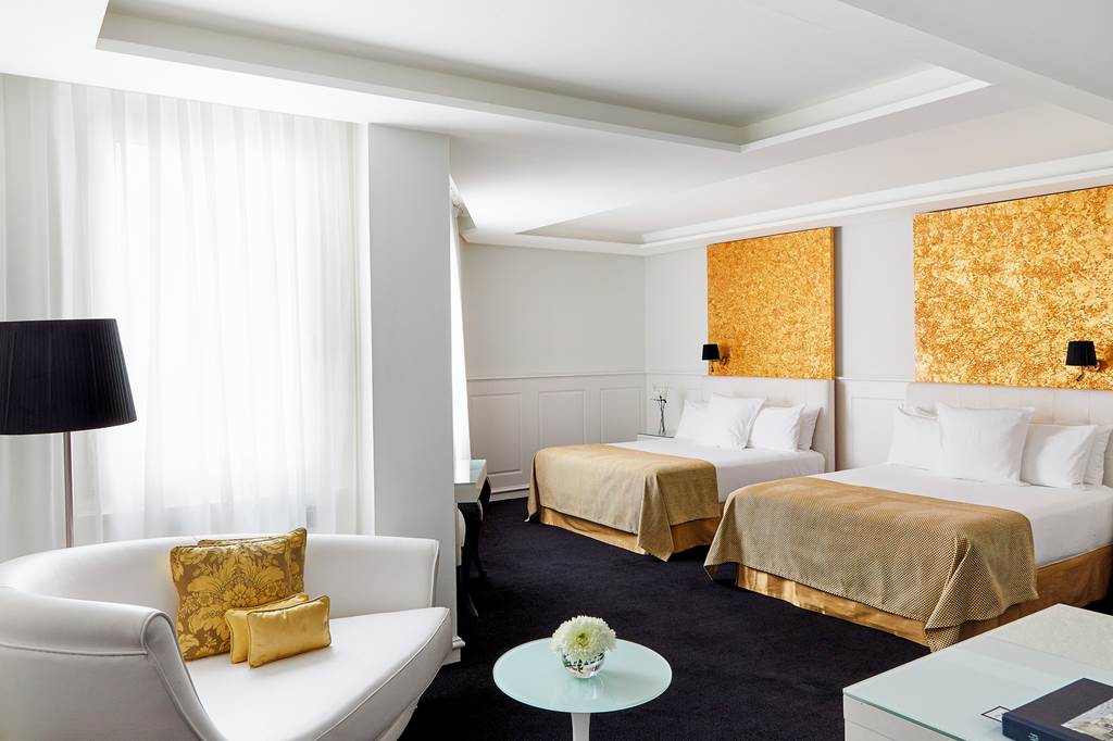 One of the most generous family layouts, with an enhanced living/sleeping area and a refined design aesthetic. Facilities include TV, Wi‑Fi, safe, coffee facilities, bathrobe and slippers, hairdryer, pillow menu, minibar* and a bathroom with bath and shower attachment.
