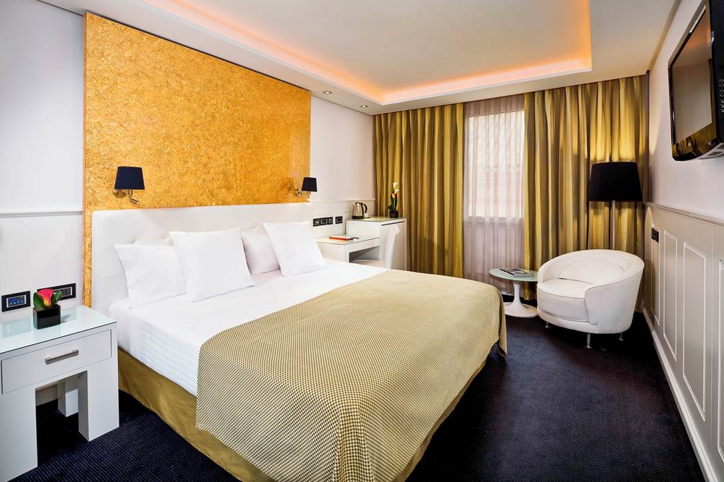 Elegant, light-filled rooms with refined décor and quality linens – a polished base in the city centre. Expect a flat-screen TV, Wi‑Fi, safety deposit box, coffee making facilities, bathrobe and slippers, hairdryer, pillow menu and minibar (chargeable). Bathrooms feature a bath with shower attachment, and rooms are air conditioned with daily cleaning and towel changes.