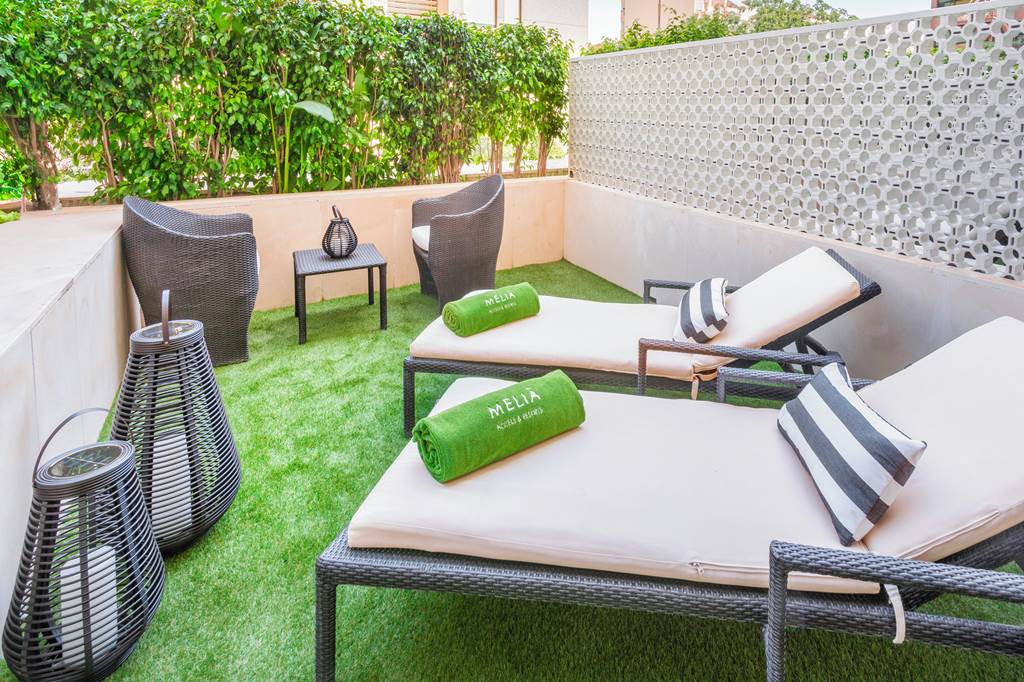 Sleeps 1–2. Adds a furnished private terrace – great for an evening glass of wine after sightseeing. Facilities otherwise mirror Melia Rooms, with kettle and minibar (charge).