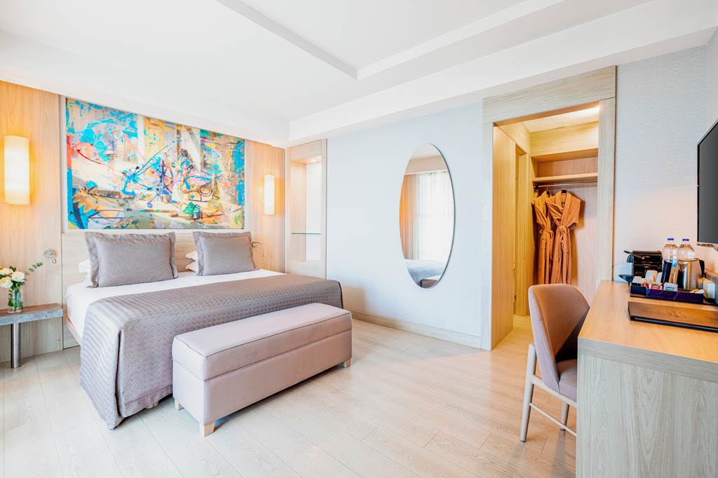 Rooms at Concorde Deluxe Resort follow the sleek, contemporary design of the main building, with soft neutrals, comfortable beds and plenty of tech touches. All rooms feature free Wi-Fi, air-conditioning, flat-screen TV, safety deposit box, balcony or terrace, bathrobe and slippers, hairdryer, ironing facilities, kettle, coffee making facilities (including a Nespresso machine with pods refilled daily), minibar* and daily housekeeping (linen/towel changes as per hotel policy).