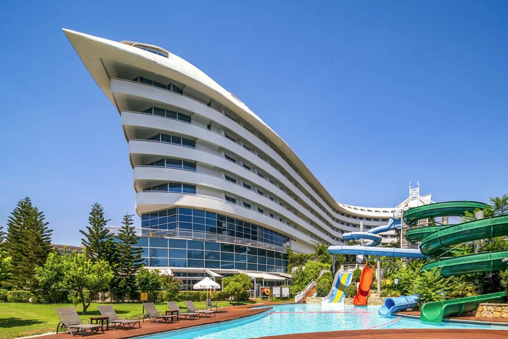 Inspired by the iconic Concorde aircraft, Concorde Deluxe Resort brings a touch of jet-set glamour to Lara Beach’s glittering shoreline. Think statement architecture, a huge beachfront pool scene, an aqua park with slides, and an impressive All Inclusive Plus concept that reads like a festival of food – from seafood on the pier to gourmet à la carte dinners and fun street-food trucks. Add in a bowling alley, spa, kids’ clubs and non-stop entertainment, and you have a high-energy, five-star playground that works brilliantly for both couples and families.