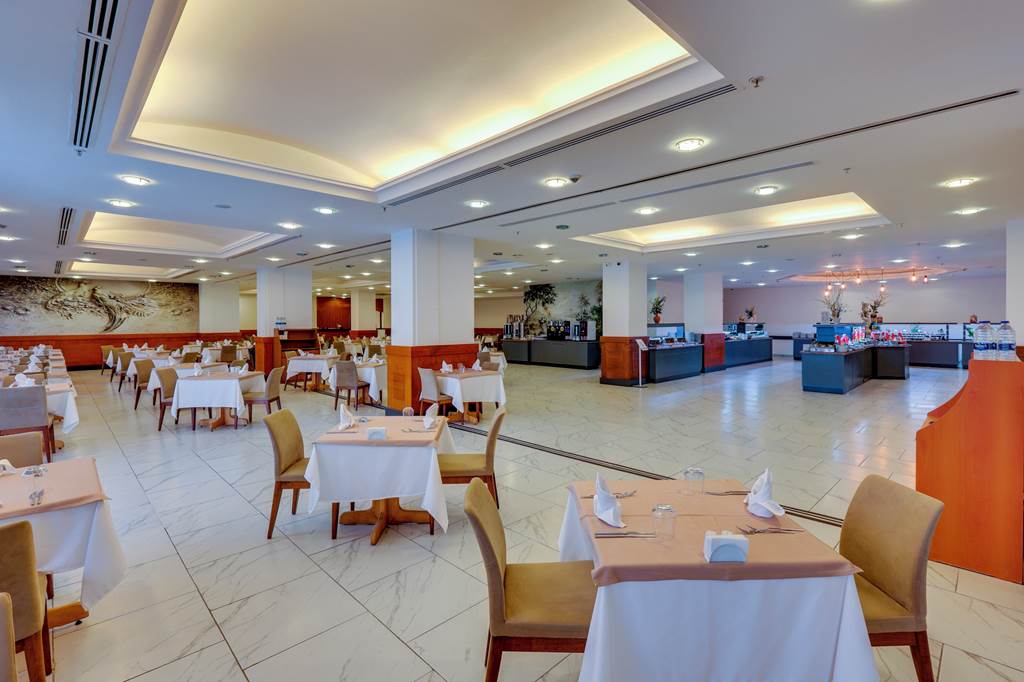 All Inclusive at Diamond Of Bodrum Hotel centres on the main buffet restaurant by the pool, where you’ll find Turkish and international dishes, live cooking stations and themed nights at breakfast, lunch and dinner. A separate snack restaurant also serves buffet-style light bites at lunch with its own show-cooking corner.