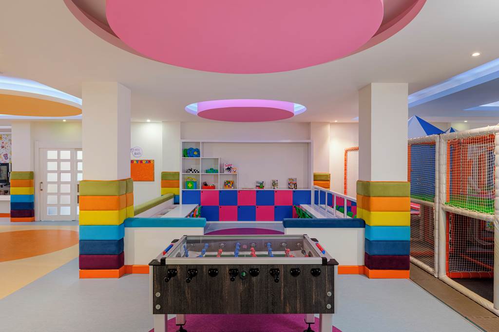 Yes, it’s an excellent family choice. There are multiple children’s pools, a splash park and aqua park, kids’ clubs spanning 0–16 years, indoor and outdoor play areas, family rooms and villas, bowling, mini-disco, and a full entertainment programme. Highchairs, kids’ buffets and children’s menus are also provided in restaurants.
