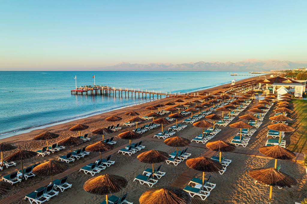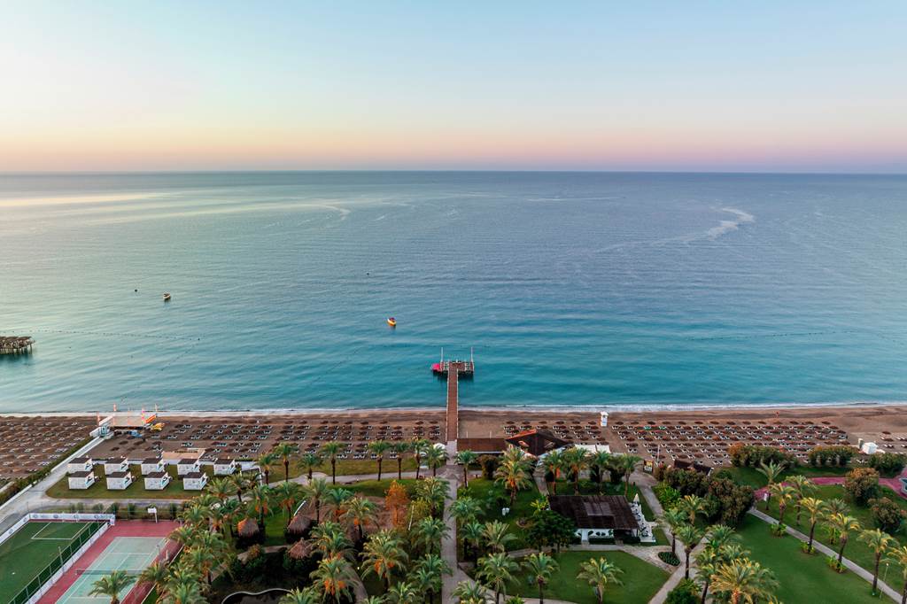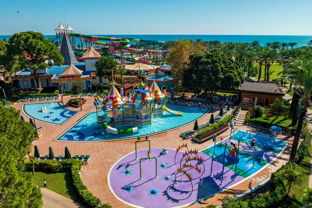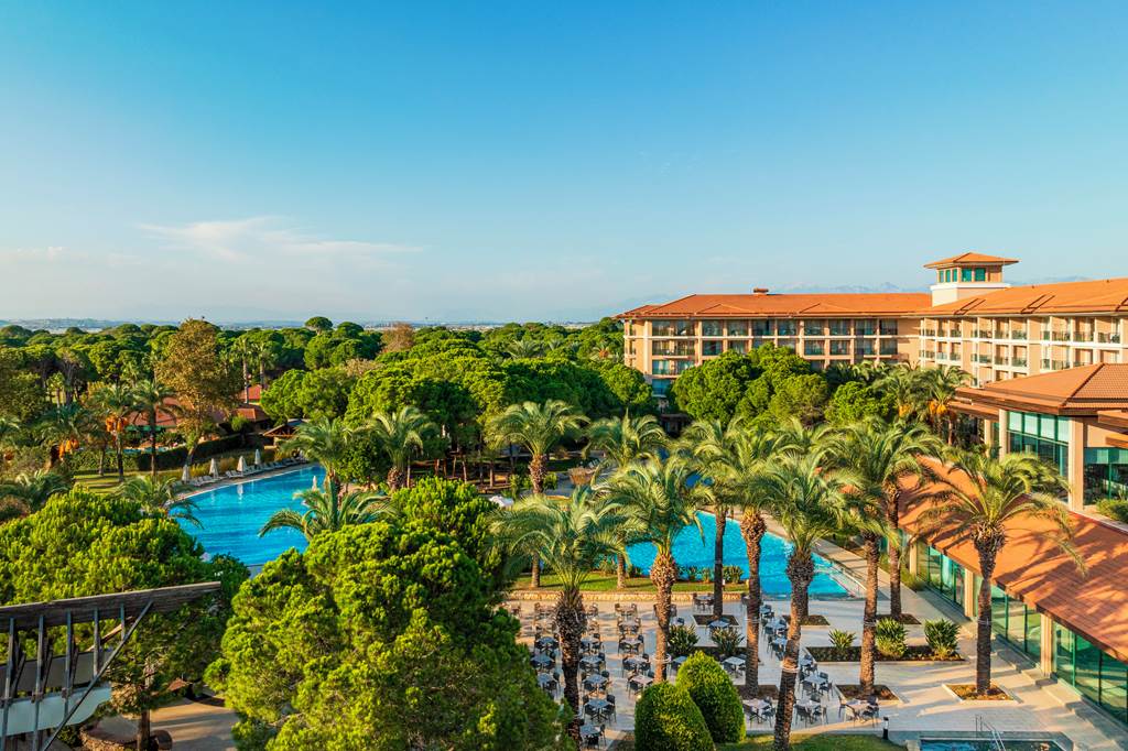 This lush, palm-filled resort rolls from lagoons and water slides straight onto a private strip of Lara Beach, wrapping everything into a generous All Inclusive package. IC Hotels Green Palace and Residence blends a tropical garden feel with serious family credentials – think eight pools, a full-on aqua and splash park, kids’ clubs from babies to teens, and a line-up of à la carte restaurants that keep evenings feeling special. Spacious rooms and villas, some with shared or private pools, complete the picture for a fun-packed stay on Turkey’s Mediterranean coast.