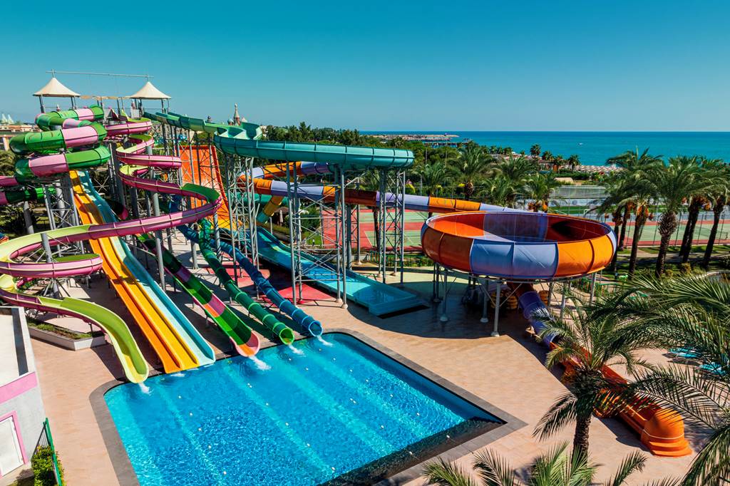 • A full aqua park with multi-lane racers, half-pipe slides, ring slides and an aqua bowl