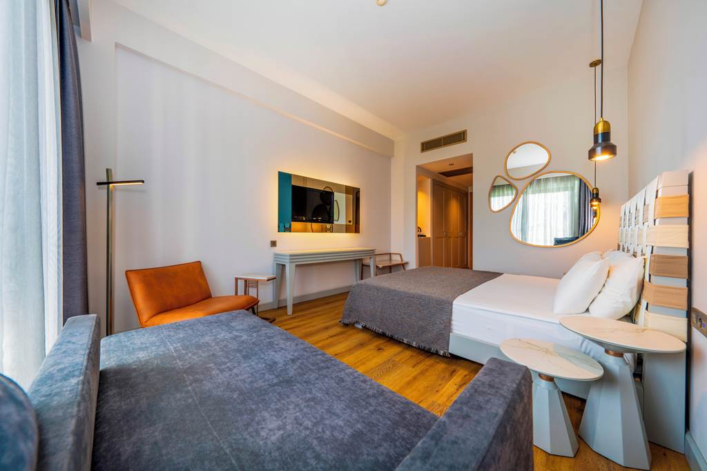 Stylish suites with extra space, a balcony or terrace, a bathroom with bath and separate shower, fridge and turndown service for a more boutique feel.