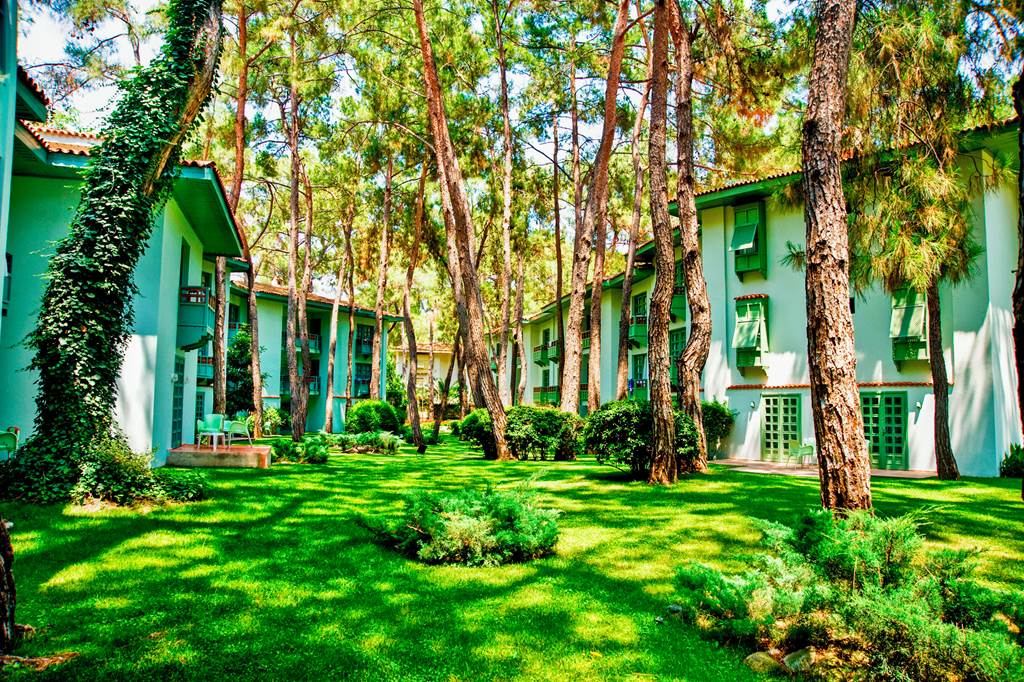 Kemer Holiday Club sits directly on the beachfront in Göynük, just outside Kemer on Turkey’s pine-cloaked Antalya coast. The hotel blends into the landscape with low-rise blocks among the trees, giving a more relaxed, village feel than a single tower-style resort.