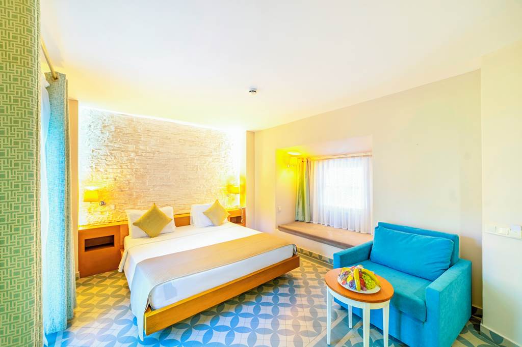 Absolutely. The resort is designed with families in mind, featuring a children’s club for ages 4–12, an indoor play area, outdoor playground, kids’ section in the main pool, aquapark with slides and a dedicated kids’ buffet area in the main restaurant. Family rooms and larger “Standard Big” rooms give extra sleeping space.