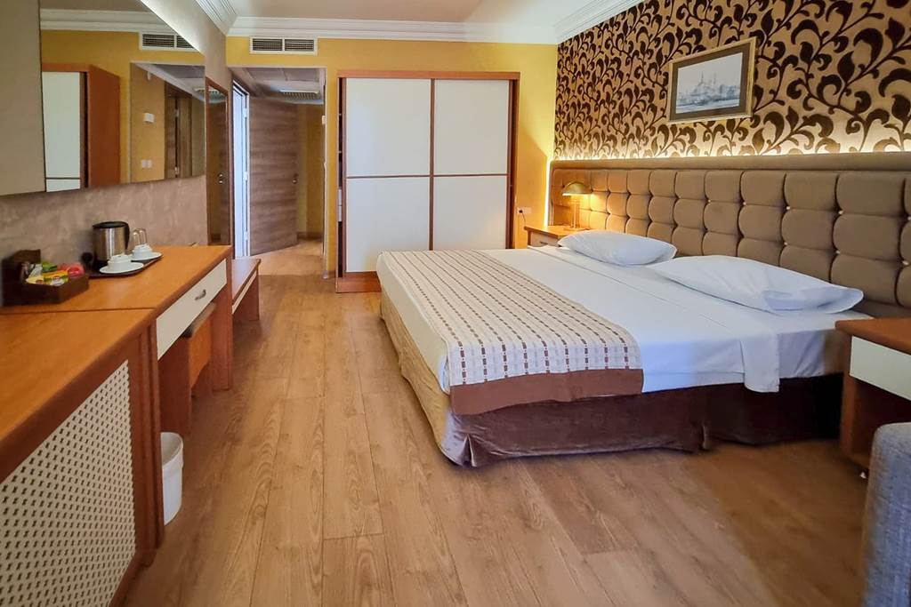 Spacious room with one double or twin beds plus extra bedding for up to two additional guests. Enjoy a balcony with sea views towards Icmeler’s bay. Ideal for couples wanting a little more space or small families who like to wake up to the water.