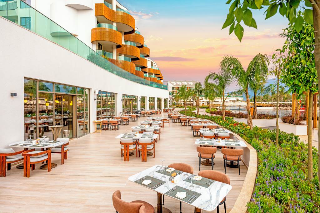 The Myra Main Restaurant is the buffet hub, serving breakfast, lunch and dinner with show cooking stations and a dedicated child buffet. For something more intimate, pick from seven à la carte venues (seasonal opening and reservations required), including: