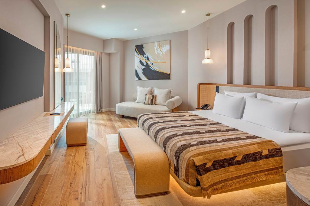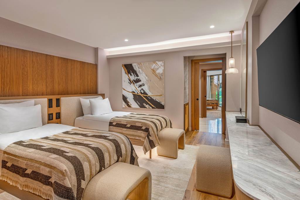 Sleeps 2. Romantic suite with private pool and terrace loungers, two shower bathrooms, turndown service and the full set of premium in-room amenities – a great option for couples who want resort buzz plus a sanctuary of their own.