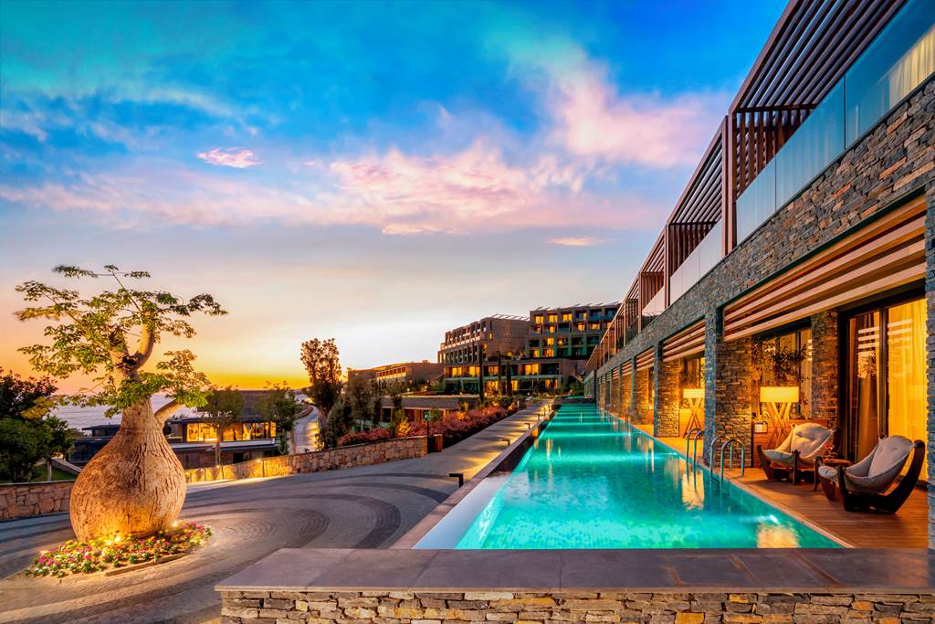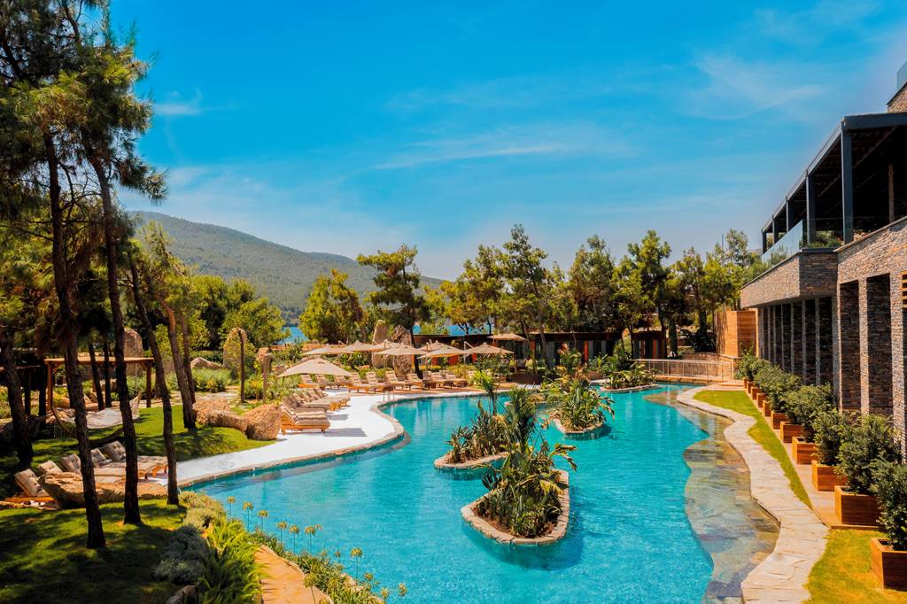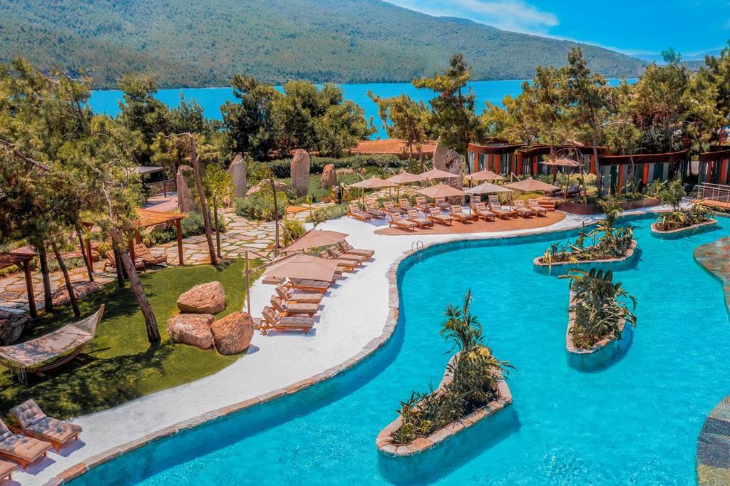 Perched above a luminous, lake-like bay wrapped in pine-cloaked hills, Lujo Hotel Bodrum is one of the Bodrum Peninsula’s most design-forward luxury resorts. This polished All Inclusive Plus playground layers statement architecture, glass-fronted pools and sweeping Aegean views with a serious food and drink line-up – eight à la carte restaurants and 12 bars – plus an aqua park, kids’ club open into the early hours and tranquil adults-only zones. Spacious, stone-accented rooms, many with terraces, whirlpools or swim-up access, complete the modern-luxe feel.