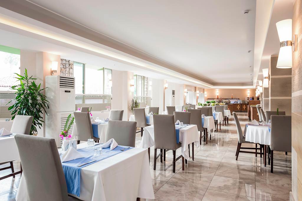 Food at Marti La Perla centres around the main buffet restaurant, serving a mix of Turkish and international dishes for breakfast, lunch and dinner. Expect salads, grills, hot and cold meze and live show-cooking on busier evenings.