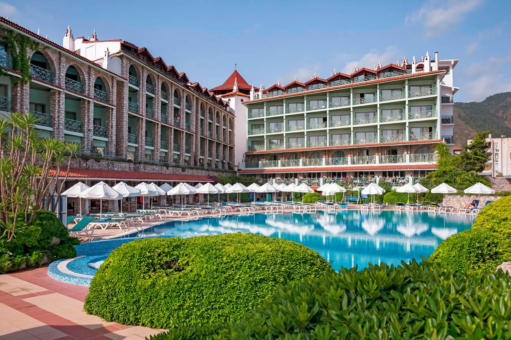 Set in a sweeping pine-framed bay, Marti La Perla is an adults-only, all inclusive retreat that puts you almost on the sand in laid-back Icmeler. Expect an easy-going, friendly atmosphere, a private stretch of beach, spa with Turkish bath and a simple-but-sociable pool scene – a great value base for couples and friends who want Turkey’s Aegean coast without the party-hard feel of nearby Marmaris.