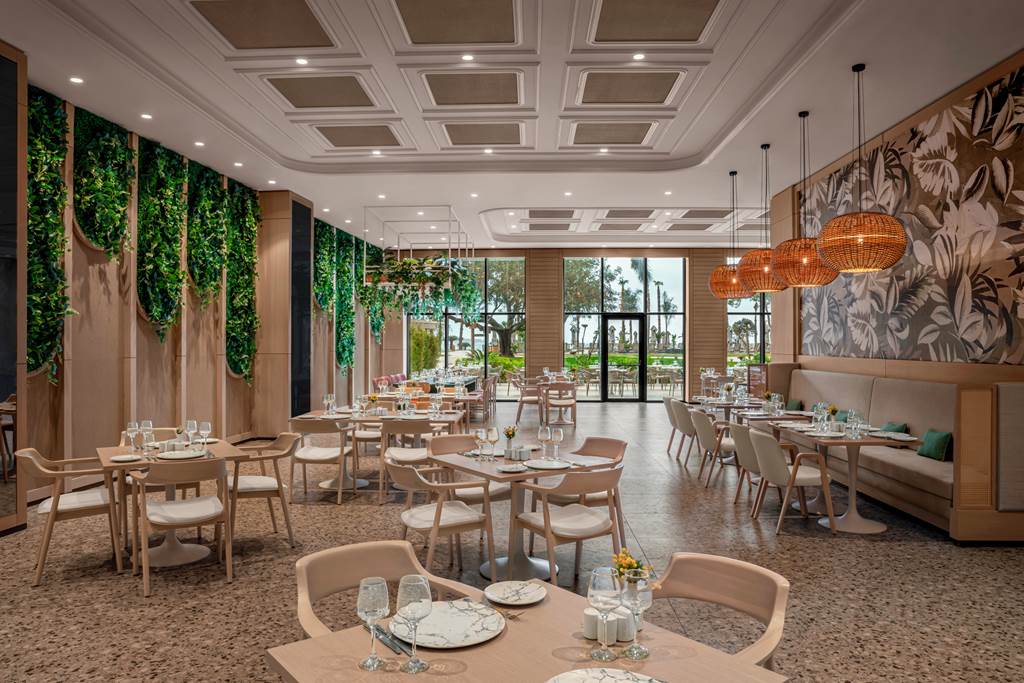 Bars are dotted throughout the grounds, from the stylish Monte Cristo Bar (home of the resort’s signature cocktails) and Verde Lounge lobby bar to beachside spots like 7 Port, Mono Beach Lounge and Beach Snack Bar, plus swim-up and pool bars including Infinity Bar, Adult Pool Bar, Aqua Pool Bar and Ng Lounge.