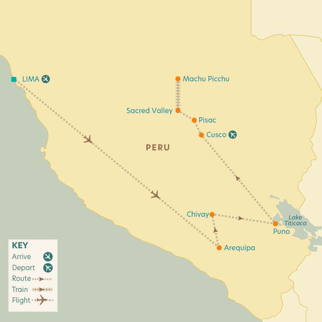 - ✔ Guided visits to Machu Picchu, Sacred Valley, Lake Titicaca & Colca Canyon